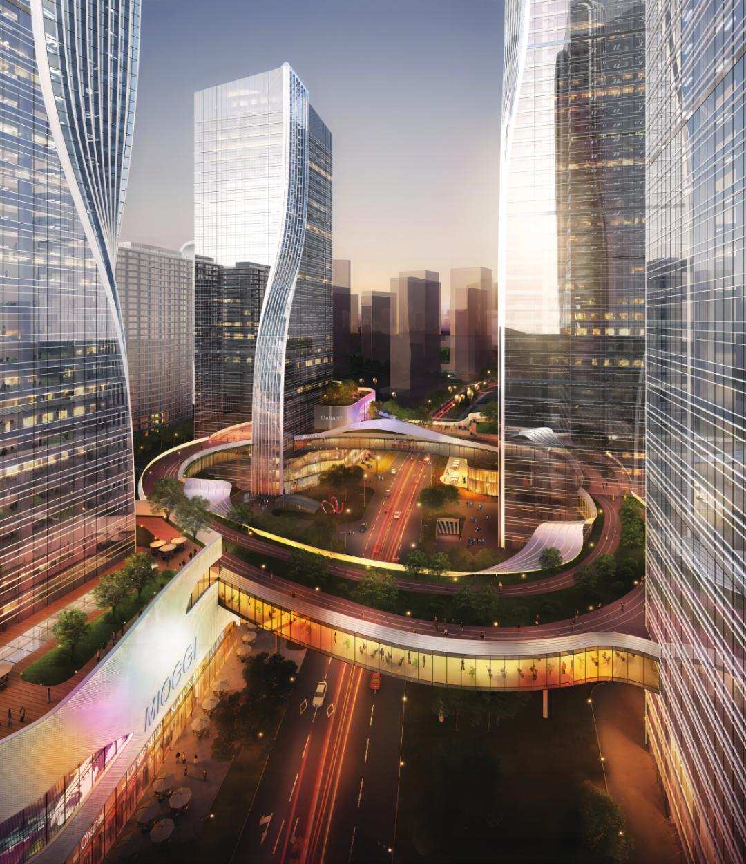 هي ٽوئن ٽاور پيچيده: 220،000 ايس ايم ايس ايم ايم، پرچون، پرچون، پرچون، پرچون، ڊٽ، ڊٽ، ماني ۽ تفريح سان. ان جو گلاس پردا والز، هم وقت سازي واري لائيٽ جي 7،200 ميٽر تي سينگاريل آهن، تقريبن 11،000 SQM تي متحرڪ نمونا، هڪ طاقتور بصري اثر پهچائڻ.