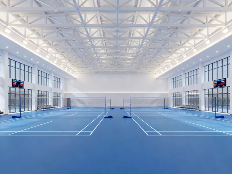 جديد راندين جي عمارتن جي ترقيءَ هيٺ، بيڊمنٽن جي جڳهن جي تعمير ۾ اسٽيل ڍانچي بيڊمنٽن هال آهستي آهستي ترجيحي ڍانچي جي شڪل بڻجي چڪو آهي. اسٽيل بيم ۽ اسٽيل ڪالمن مان ٺهيل مکيه فريم، ڍانچي جي طاقت، جمالياتي اثر ۽ اقتصادي ڪارڪردگي کي نظر ۾ رکي ٿو، پيشه ور راندين جي جڳهن جي معيار کي ظاهر ڪري ٿو. هڪ بند جڳهه جي طور تي، هڪ بيڊمنٽن هال کي سٺو وينٽيليشن سسٽم ۽ حرارتي موصليت جو اثر هجڻ گهرجي. هڪ اسٽيل جي تعمير ٿيل بيڊمنٽن هال وڌيڪ ماحول دوست ۽ حرارتي موصليت واري ڀت جو مواد استعمال ڪري سگهي ٿو، ۽ ڇت تي شمسي پينل نصب ڪري سگھجن ٿا ته وينٽيليشن سسٽم لاء بجلي پيدا ڪن.